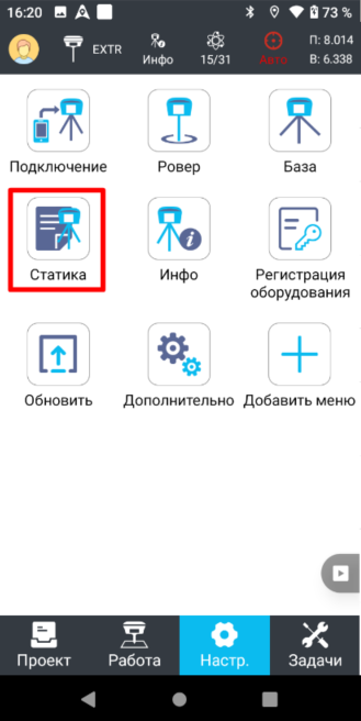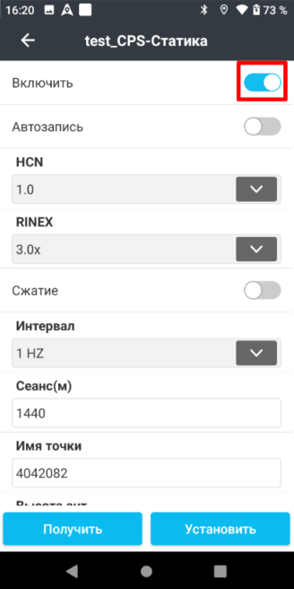 Важно: Перед началом работы убедитесь, что установлено соединение с GNSS-приёмником.