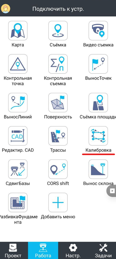 Шаг 1. В LandStar перейти на страницу Работа и откройте меню Калибровка | ![]() |