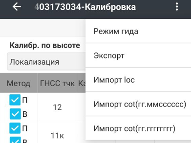 Так же, если у Вас уже имеется файл с калибровкой, вы можете Импортировать его (три точки -> Импорт .loc(cot)
