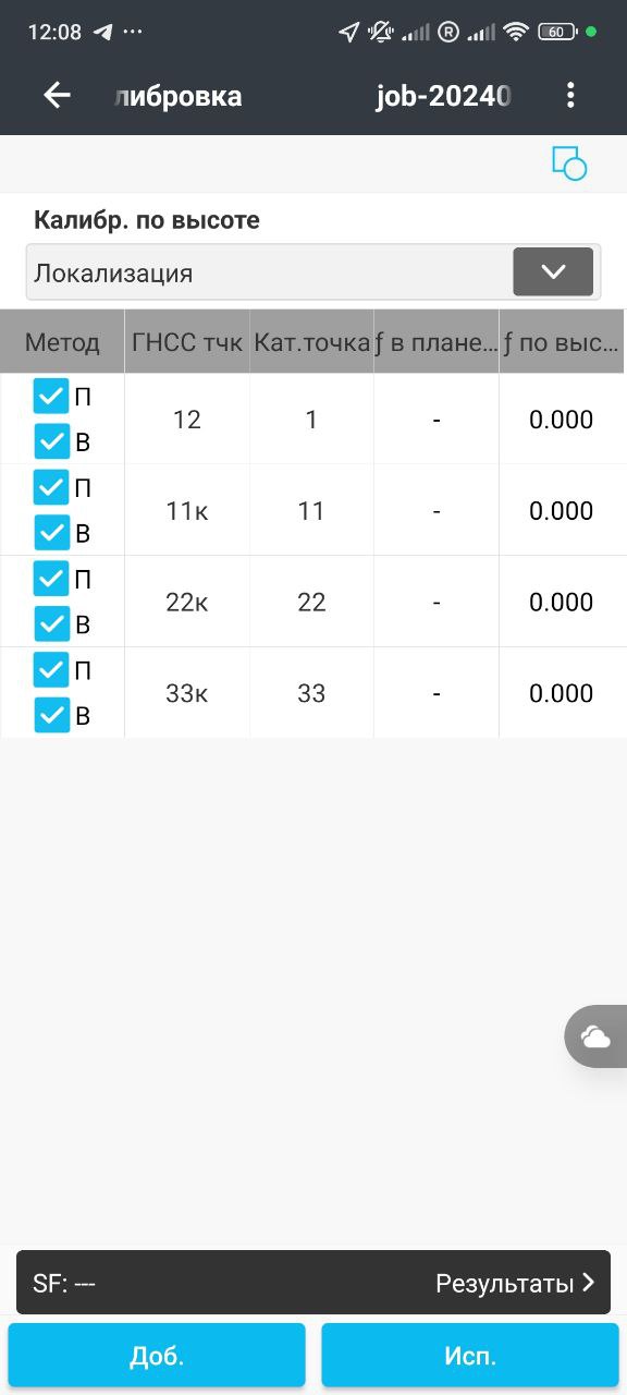 Шаг 4. После добавления четырёх или более точек, проверте невязки в колонках: f- в плане и f - по высоте. Если точность устраивает, нажмите кнопку "Исп." и подтвердите действие. | ![]() |
