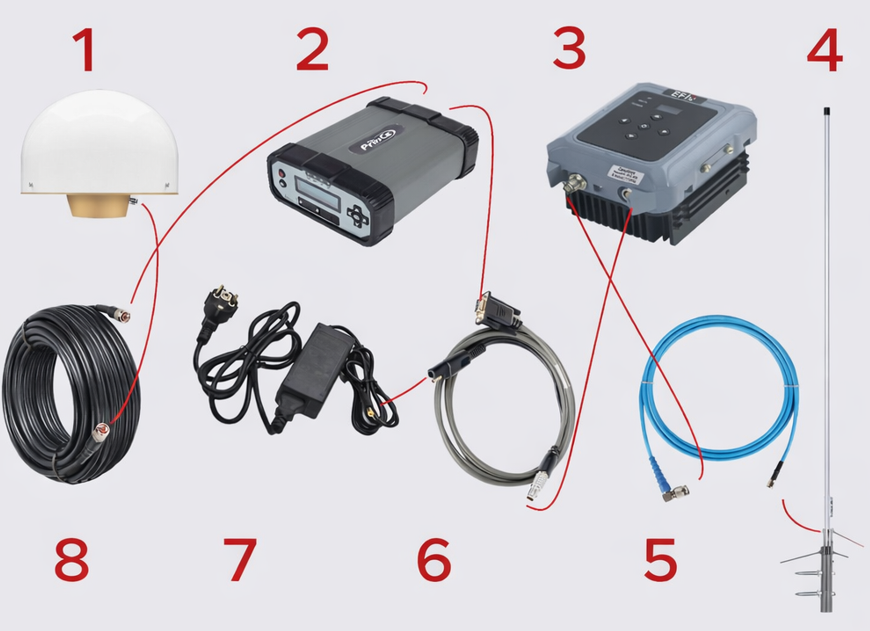 Соедините приёмник с внешним УКВ-модемом через кабель Lemo или беспроводным методом (Bluetooth), подключите внешнее питание.