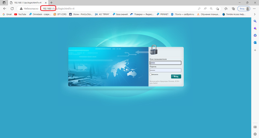 3. В адресную строку браузера введите IP-адрес: 192.168.1.1.