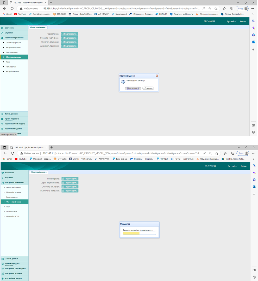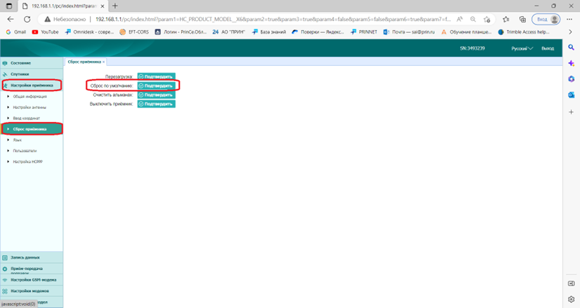 7. Нажмите кнопку «Подтвердить» в строке «Сброс по умолчанию».